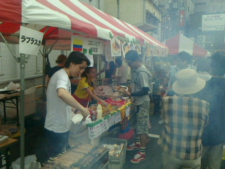 強烈なラテンのリズムが流れ踊れない私は掛け声だけで喉がかれました。傘を持って出かけましたが暑い日差しで此処だけは強烈な暑さと熱気に包まれていました。ビールが旨かった。