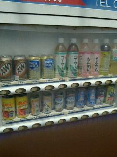 自販機も沖縄で販売している商品、沖縄そば製麺所は本土にはない。黄色のテントはブラジル料理店。