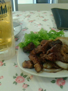 沖縄料理は今回パスして近くのブラジル料理店でお肉(いちぼ)をつまみにビールを戴きました。暑くビールはあっという間に2杯飲み干し大量の肉を食べ終わる頃は暑い中散策し過ぎたのか調子が悪く此処で引き揚げました。