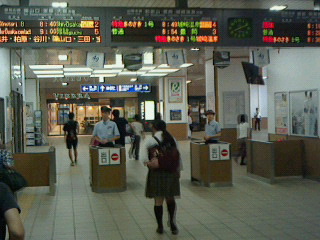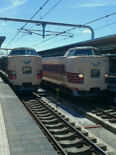 綾部駅から福知山駅へ。福知山駅には昔懐かしい国鉄型特急が3台も並んでいます。また京都丹後鉄道の特急も。改札も上はデジタルの出発表示ですが改札は係員の人的な作業でほのぼのとしています。