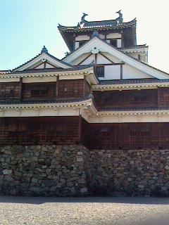 2重3階の大天守、2重2階の小天守を復元し中は博物館になっている。天守周りには天守台に使った五輪塔、墓石などが大量に使用されていたものが展示されている。今でも天守台には墓石が入っている。(転用石)。近隣の寺から大量に墓石を持ってきたようです。