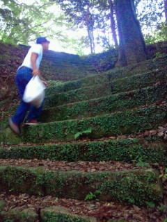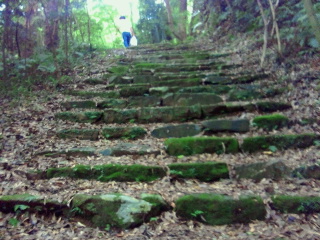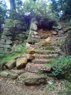 山城と言っても182mですから軽く考えていました。駐車場から出てきた地元の人?と途中会い、せっかく遠くから来たのだから、なだらかな道でなく、昔の石段などが残っている所を案内してもらいました。その方は山の中で食事をするのが好きだそうです。