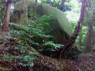 下に降りたら昔、舗装された道へ出てどっちへ行って良いのか解らないですが取り敢えず右に行く。上からは大きな石が木で一応止まっていますが一寸した揺れで落ちてくる心配があります。