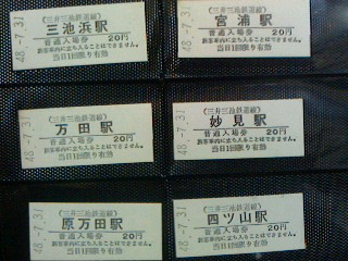 廃止切符は6並びの8駅しか持っていない。ただこの会社の切符はゴム印での駅名で以前の手書きの切符以外ではこの会社の入場券だけしか私は持っていない。