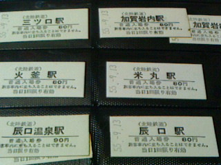 大正11年辰口温泉、湯谷温泉などの観光の路線と九谷焼などの貨物輸送を目的として設立。昭和17年に北陸鉄道に吸収。昭和55年に全線廃止。駅数は21だが切符は22、以前の辰口駅(辰口温泉駅)を含む。
