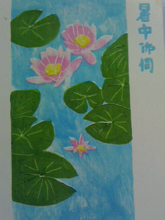 蝉も泣き出し本格的な夏で20日の土用から暑中見舞いの時期になったようです。私は暑中見舞い状は出す習慣がないですが今年も会社時代の大先輩から版画で戴きました。
