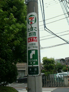 セブンイレブンはまっすぐ行って四つ角を左折ですが、看板の矢印は右側に行けと言う矢印が。