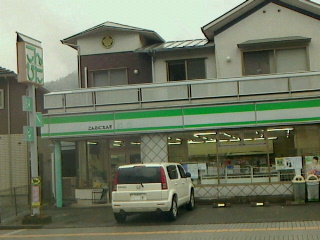 遠目から見るとファミリーマートかと思ったが何となく違うような感じです。店名の看板を見ると何故か「こんびに」と書かれています。