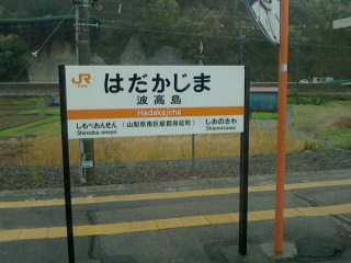 漢字で波高島、此処は山の中の身延線の駅です。どうして島が付くのか。周りには富士川があるが当然海は無く、此処は山があっても海なし県。正式名は「波高島駅」
