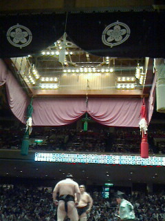 2時を1時半に弟と待ち合わせて国技館へ。幕下上位の高砂部屋朝弁慶の取り組みを見るために変更するも取り組みは十両土俵入り後だったため地下の大広間で田子の浦部屋鮭の塩ちゃんこをとりあえず戴く。
