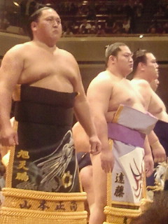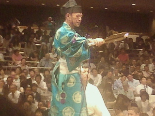 高砂部屋の十両格の行司木村朝之助、同じく呼び出し邦夫、いつの日か彼らの横綱戦を見たいものです。