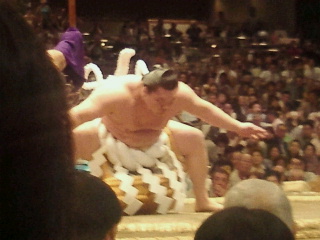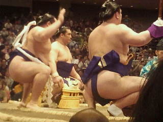 いつもの西側溜席でなく同伴の弟のリクエストで正面溜りで見ました。確かにテレビと同じに見えますが長時間では足がしびれ、腰も痛くなります。やはり力士のお尻になりますが西側記者席の後ろの溜り席が足が伸ばせ楽でした。