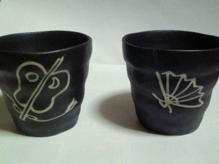 今回のお土産軍配と扇子の絵柄の陶器製グラス。