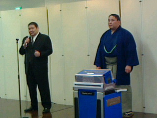 高砂部屋の千秋楽打ち上げパーティーは開会の挨拶から来場者を笑わせながら力士への奮闘を期待しての親方の挨拶で和やかに始まった。