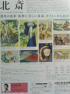 9月13日より11月9日までボストン美術館所蔵の北斎の浮世絵の展覧会1500円