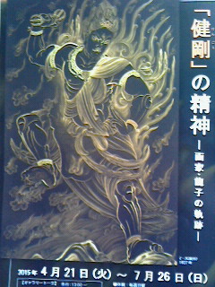 今回展示ではチラシにもなっている黒地に金での「一天護持」は迫力のあるそれこそ剛健という作品。小品の「宮城の灯」と言う作品は二重橋のライトを描いた作品ですが黒一色なのに何故か私には明るく色が見える。