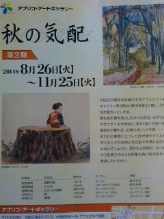 東口の区民ホール・アプリコ地下アートギャラリーへ。11月までの「秋の気配」を見に行く。1階は大ホールの催しで長蛇の列、地下は普段催しがなければガランとしているのですが今日は大田区生まれの宗教家池田大作氏の写真展が開催されていて地下ホールも多くの人で見る雰囲気でもなく後日機会があった時見ることにしてほうほうの体で退散。