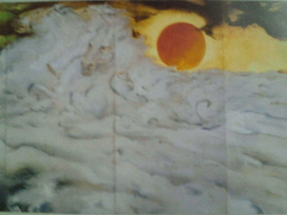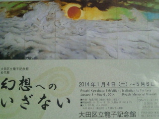 「日々日食」はコンクリートのビルに上に日蝕が描かれている龍子らしくない作品です。また得意のカッパの図3点など龍子の作品では100号位では小品に見えてしまいます。