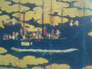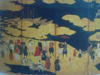今回の展示は等身大のイタリア人が描いた支倉常長の肖像画(イタリア個人蔵)、南蛮人渡来図屏風(重文・個人蔵),世界図屏風世界及び日本図屏風のうち6曲1雙(重文・個人蔵)が展示されています。作品が個人蔵の為写真は撮れず。