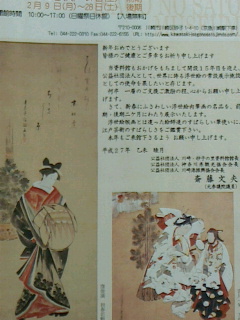 江戸美人、京美人、浪花美人と豊国、井特、梅林斎雪山の三幅、長崎の絵師川原慶賀、柴田是真、河鍋暁斎、司馬江漢など絵だけ見ると浮世絵?と思ってしまう作品も。2月28日まで入場無料。