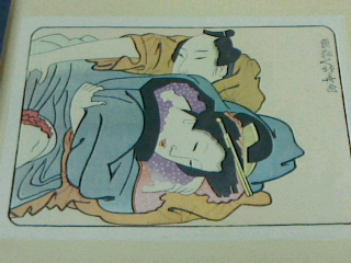 この展覧会にはチラシがなくこんなものだと言う絵を私が持っている浮世絵三大絵師傑作選(喜多川歌麿、溪斎英泉、葛飾北斎)という桐箱に入っている複製画です。ただ此処に載せていいのか解りませんが数点載せています。まぁ相変わらずのボケピン写真ですが。