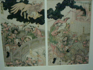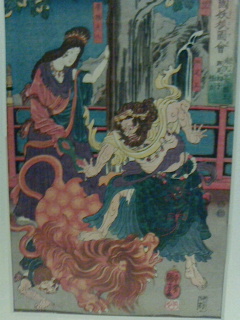中国物では左が葛飾北斎の三国妖狐傳、同じような題材で国芳が描くと全く違うような絵になる。