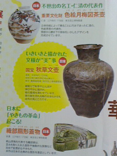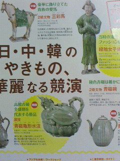 日中韓のやきものの競演です。日本には中国・韓国を経て伝わっています。各国15点づつ展示で見ごたえがあります。