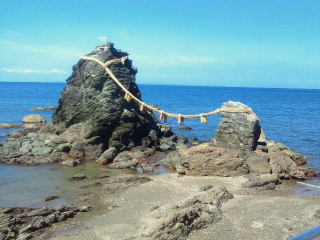 最近は少なくなったが昔は良くテレビでも流れた二見浦の日ノ出、国貞、昇亭北壽。画家によってかなり違う。一番下は数年前撮った夏の二見浦。