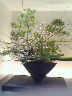2階への階段の昇り切った所には大きな池坊のいけばなが正月らしく飾られています。