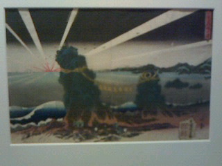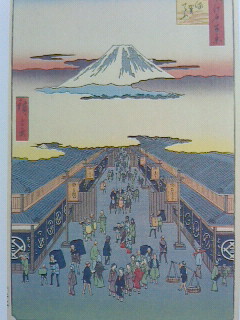 今月の展示は季節柄正月らしい作品で纏められています。礒田湖龍斎、豊春、豊国、北斎、広重など正月の風俗、七福神、富士山などの風景など。