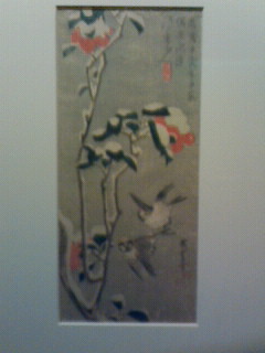 広重の「梅に小鳥」「冬椿に雀」広重は少ない色で情緒たっぷりの風景画が良いです。