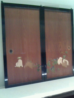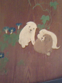 杉戸に犬が描かれた図は犬と言えば丸山応挙、鶏が描かれた扇子、鶏と言えば伊藤若冲。わざと広げていない展示だが。