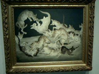 隣の部屋では藤田嗣治の「動物宴」「猫」戦争画のコーナーでは「アッツ島玉砕」など。猫や変わった子供の描き方など個人的にも好きな作家です。戦争画はしょうがく従軍して描いたのでしょうがこの戦争画が後に日本から離れ二度と戻らなくなる原因を作り出す。