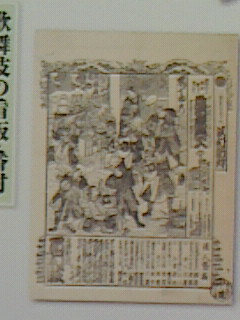 博物館では桜祭りが開催中で博物館前の道路の両サイドは桜並木が延々と続いています。博物館前では地元の太鼓が勇ましく演奏していますし屋台も出店。それを横目に見ながら入場すると桜祭りの為入場無料との事、そしてお土産に浮世絵の絵ハガキまで戴きました。
