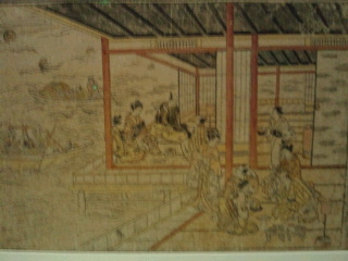 今回は個人的に興味があったのは西村重長、勝川春扇、昇亭北寿など、あまり聞いたことがない絵師の作品です。(写真の右は師宣でこの時代はまだ色がなく、大きい写真が西村重長の作品浮絵品川座敷で朱は後で描いたもの。)