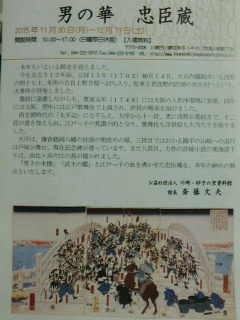 両国の本所若松町吉良邸から泉岳寺までの見事仇討を達成した話ですが、当時は幕府に遠慮して時代が南北朝時代に置き替えられ「大序」から「11段」にと歌舞伎の当たり狂言になりました。