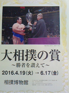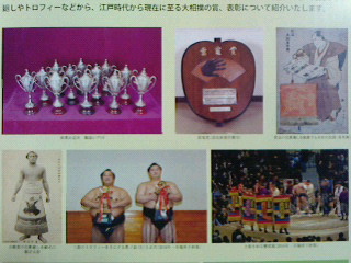 展示は「大相撲の賞」と言う事で昨年も展示していた双葉山の賜杯レプリカ、懐かしいパンナムの優勝カップなどと3月の琴奨菊の優勝の写真などでちょっと物足りない展示でした。