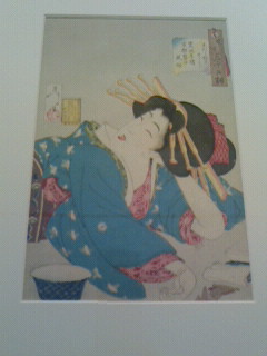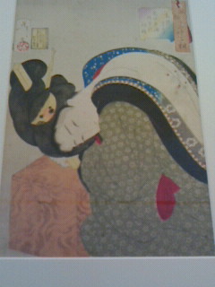 芳年は歌川国芳の弟子、国周(くにちか)は歌川国貞の弟子です。今回の展示は月岡芳年の風俗三十二相と豊原国周の見立昼夜廿四時のシリーズ物をメインに国貞、国芳、揚州周延、水野年方、伊東深水、池田蕉園、山川秀峰などの作品も。