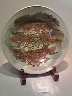 電車や食べ物ばかりを書いていて本来の目的の陶芸作品はもう何年も来ていますので何度か見た作品です。色的に地味な鉄絵ですが落ち着いたデザインも今でも斬新です。人間国宝の作品には素人が何も言えませんが好きな絵付けです。