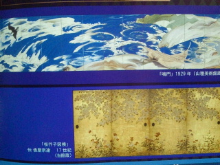 今回第一期の目玉は「鳴門」「踏切」が展示されています。鳴門は昭和4年の制作の大屏風で鮮やかな青が全体を占めていますがその分波の白が激しく飛び回っているような躍動感のある図。