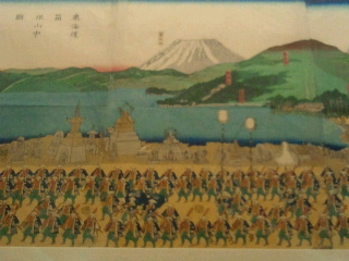 上の図は東海道大森縄手、我がふる里はこんな畦道だったんだと初めて見ました。もう一枚は箱根之図です。今回は東海道五十三次は載せませんが機会があれば後摺りや複写版の私の所蔵で初摺りと変わり図を比較したものを載せたいと思います。