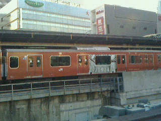 友人との昼酒の帰り道五反田で東京駅100周年記念のラッピングの煉瓦色の山手線を初めて見ました。
