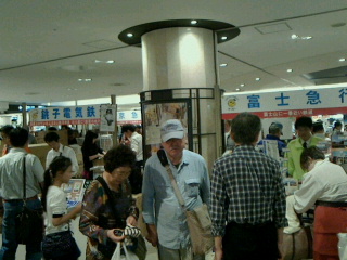 雨が降っている中あきれ顔のママリンから逃げるように会場へ向かう。この雨の中でも大変な人であちこちのブースで行列が出来ている。子供連れも多く新幹線などに目が行っている。
