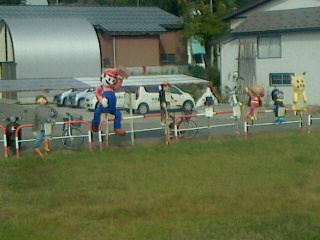 線路では住民が手を振ってくれていた。居ない場合でと人形も。