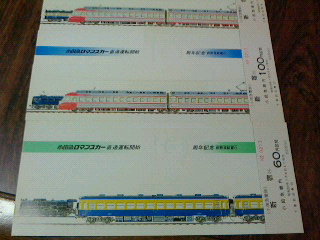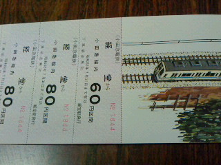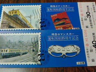 昭和24年秋に2両編成の急行から昭和52年には10両編成に。如何に沿線の発展や利用者の増加が有った事か。きっぷは10両編成の図で長さ78㎝の長さ。