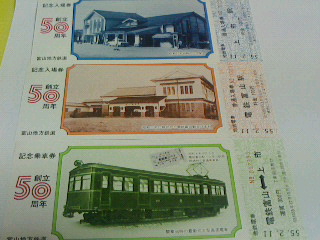 富山地方鉄道創立50周年記念入場券・乗車券