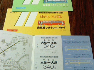 樽見鉄道開業2年、3年記念乗車券付きテレホンカード
