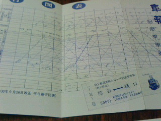 62年10月1日 列車運行図表に印刷したきっぷ。誰も使わないだろうとの考えか。