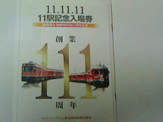 11年11月11日 11駅記念入場券 箱根登山鉄道