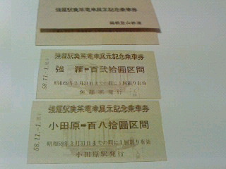 強羅駅魚菜電車展示記念乗車券 58年11月1日